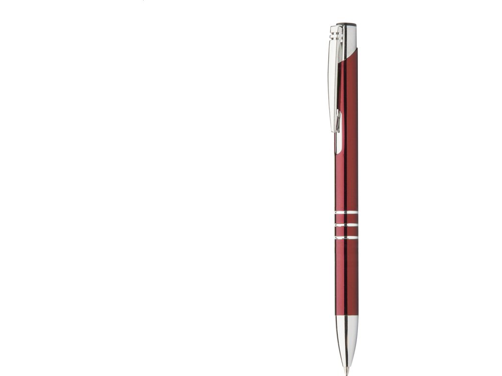 Hliníkové kuličkové pero s modrou náplní.
