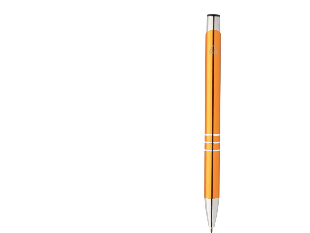 Kuličkové pero z recyklovaného hliníku s metalickým povrchem a modrou náplní.