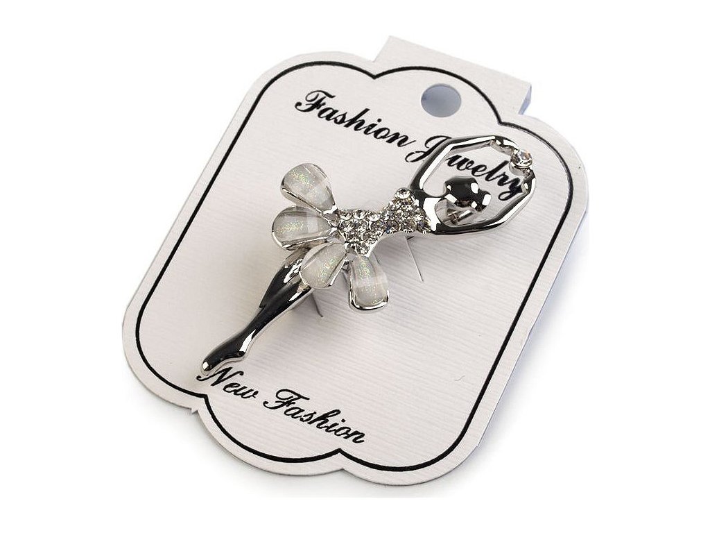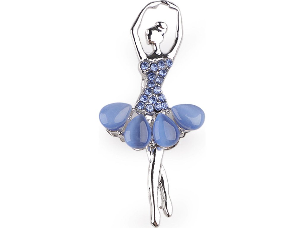 Brož baletka vás díky třpytivým kamínkům nadchne. Tento elegantní kousek můžete využít na běžné nošení i na společenské události - návštěvy divadel, oslavy apod. Vynikne na saku, kabátě, košili či halence. Dodá nádech výjimečnosti třeba kloboučku nebo čepici. Můžete si i ozdobně sepnout šátek. Tělo a sukně jsou osázené broušenými kamínky, všechny se oslnivě třpytí. Na zadní straně je brožový špendlík. Brož je na kartě, která se dá zavěsit na prodejní stojany. Baletka č. 3 je ozdobená barevným smaltem, broušené kamínky má pouze v dekoltu a na spodním lemu sukně.