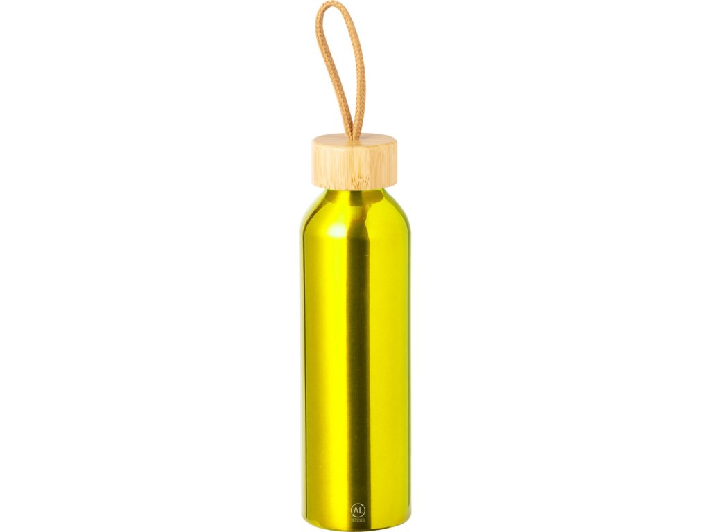 Láhev z recyklovaného hliníku s bambusovým uzávěrem, 600 ml.