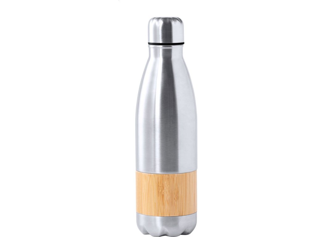 Sportovní láhev ve tvaru láhve z nerezové oceli s bambusovou vložkou, 750 ml.