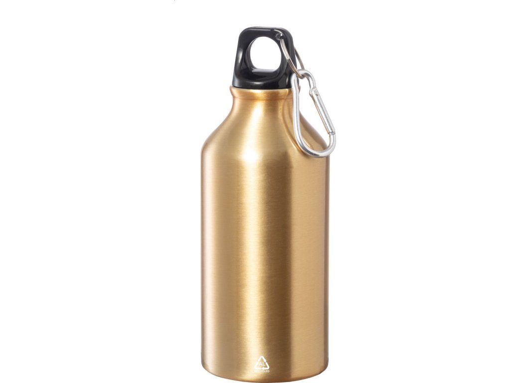 Láhev z recyklovaného hliníku s karabinkou z recyklovaného hliníku, 400 ml.