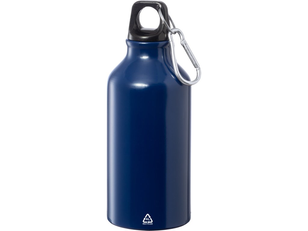 Láhev z recyklovaného hliníku s karabinkou z recyklovaného hliníku, 400 ml.