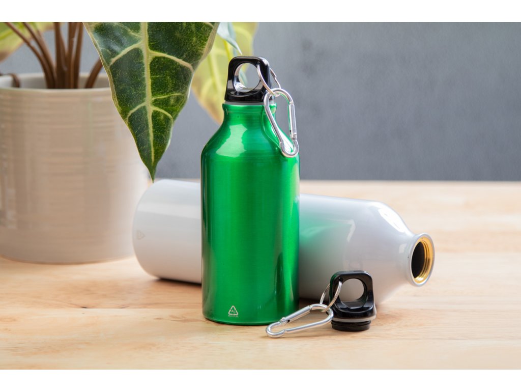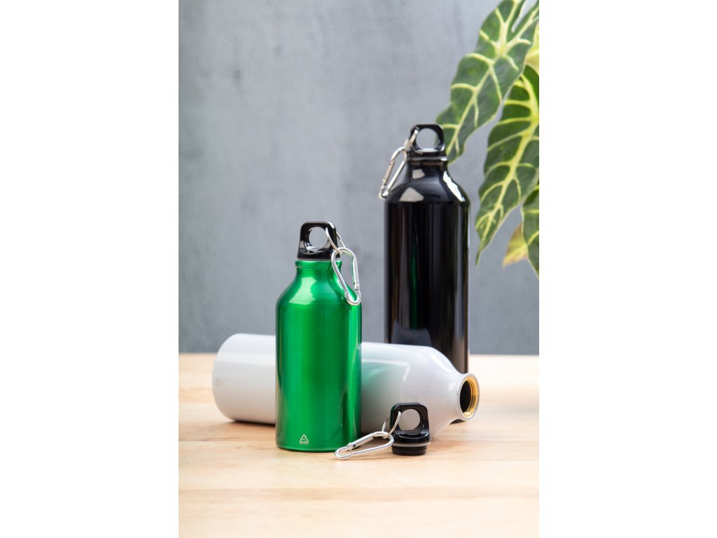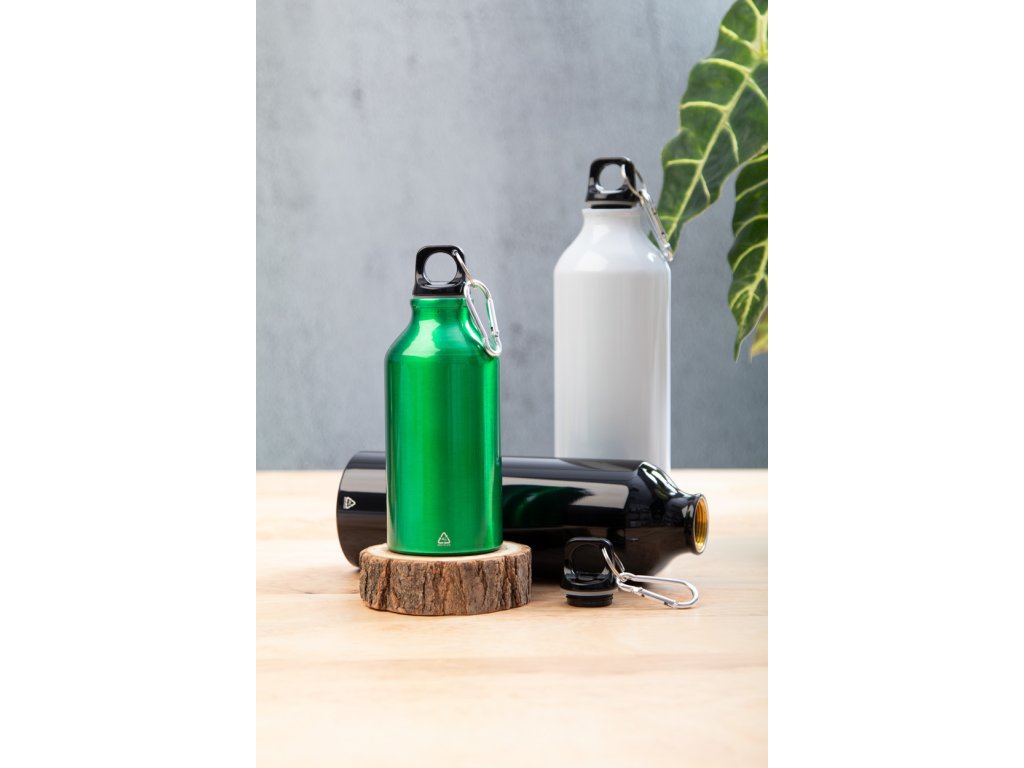 Láhev z recyklovaného hliníku s karabinkou z recyklovaného hliníku, 400 ml.