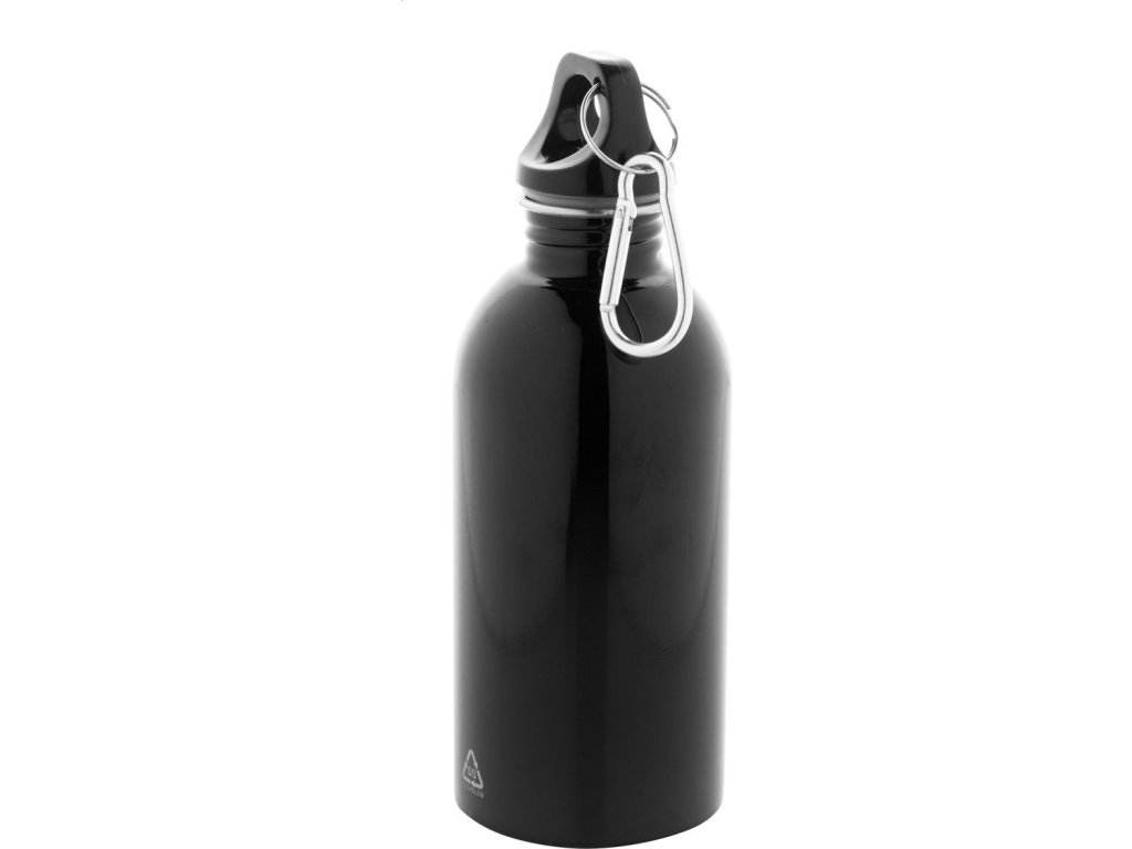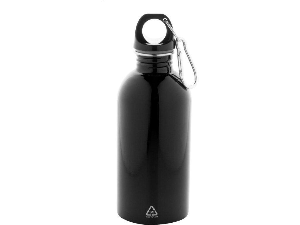 Láhev z recyklované nerezové oceli s hliníkovou karabinou, 400 ml.