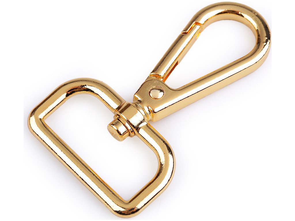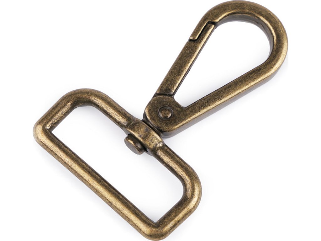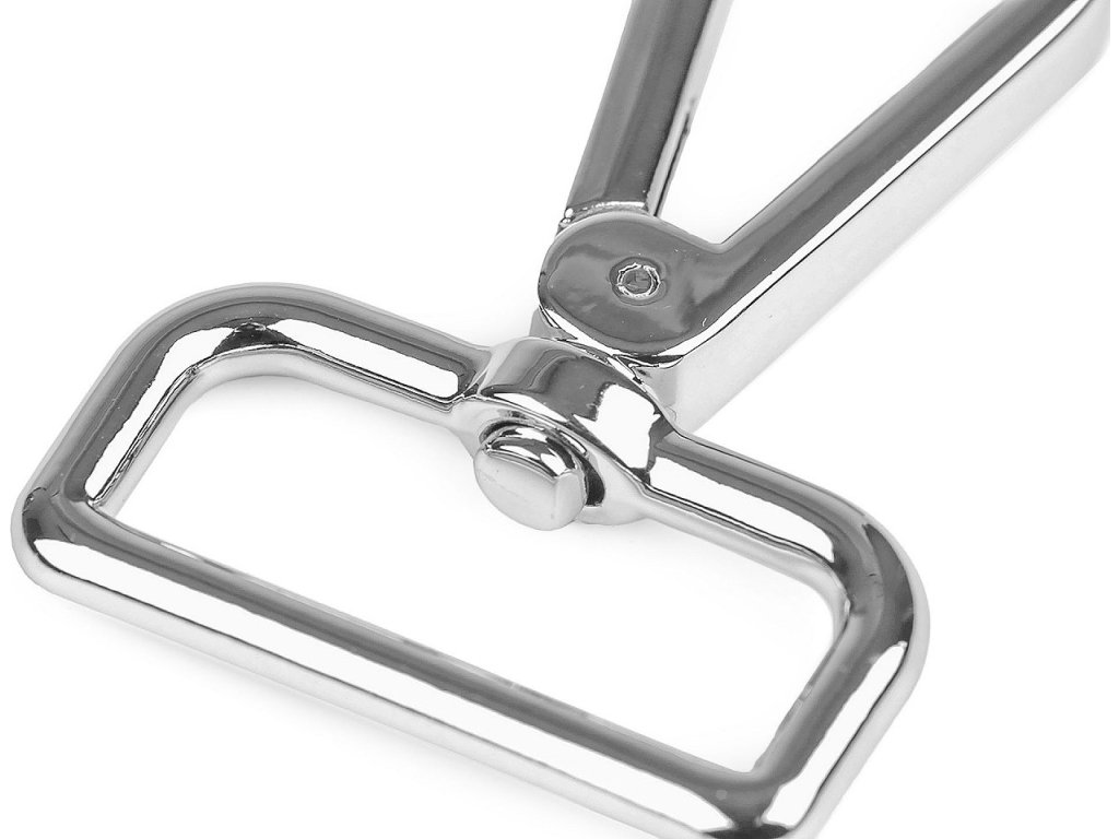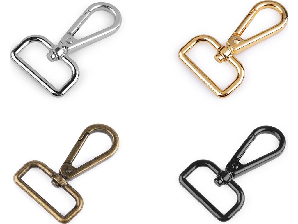 Kovovou karabinu využijete na upevnění popruhů k taškám a kabelkám. Můžete ji použít také na výrobu vodítek pro psy. Je otočná. Rozměry č. 2: Rozměry celkem: 41 x 61 mm Rozměry karabinky: 21 x 40 mm Šíře průvleku: 32 mm