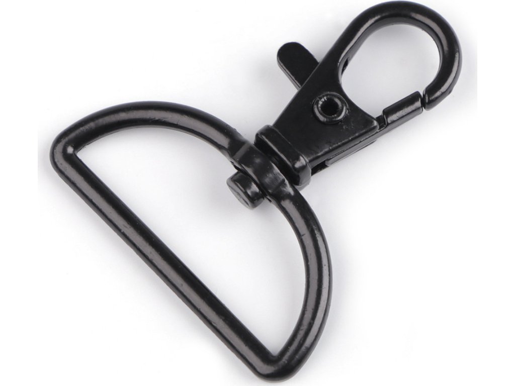 Kovovou karabinu využijete převážně na upevnění popruhů k taškám a kabelkám. Můžete ji použít i na výrobu vodítek pro psy. Je otočná. Karabina je vhodná na popruh o šíři 30 mm.