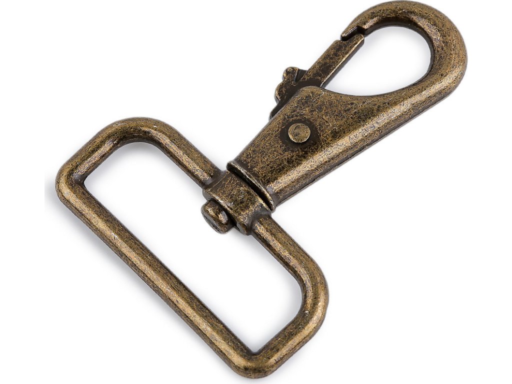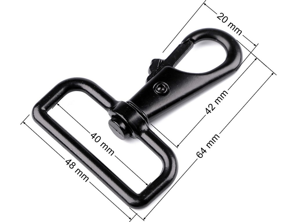 Kovovou karabinu využijete na upevnění popruhů k taškám, kabelkám, ale i na výrobu vodítek pro větší psy apod. Je otočná.