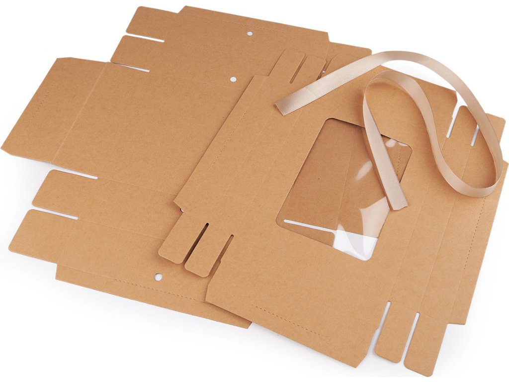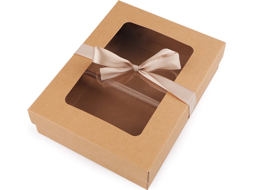 Papírová krabička s průhledem a stuhou