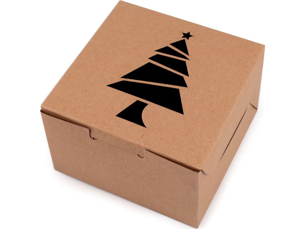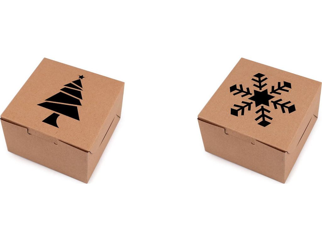 Vánoční papírová krabička s průhledem stromeček, vločka