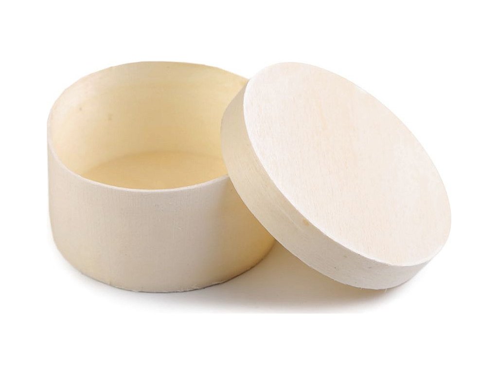 Do malé kulaté dřevěné krabička schováte drobné předměty jako jsou gumičky a sponky do vlasů, náušnice, knoflíky, kancelářské sponky apod. Můžete ji nechat přírodní nebo ji dozdobit dle svého vkusu. Můžete využít techniku decoupage, malbu akrylovými barvami, samolepicí krajky apod.