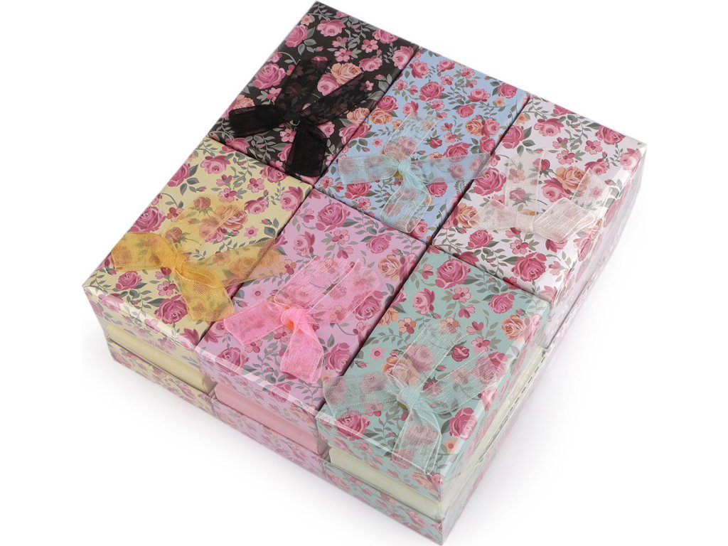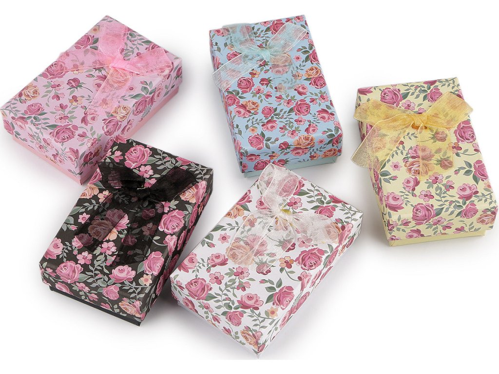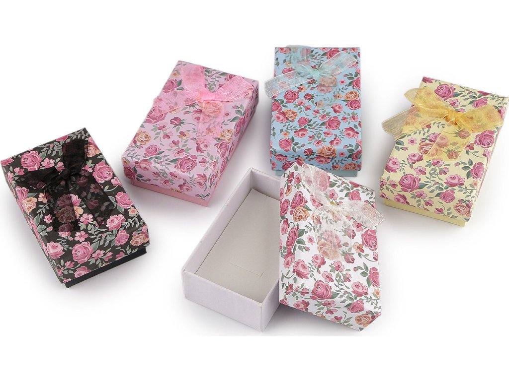 Papírová krabička na šperky s monofilovou mašlí je ozdobená potiskem květů. Její jedinečný vzhled přitáhne pozornost na první pohled. Je velmi pevná, šperky v ní můžete dlouhodobě uchovávat. Díky své kompaktní velikosti je perfektní i na cestování. Uvnitř je klasická molitanová výplň s průřezem na řetízek s přívěskem, náušnice a prsten, která se dá vyjmout. Do krabičky můžete zabalit i jiné drobné dárky. S touto elegantní krabičkou obdarovaný pocítí, že vám na něm opravdu záleží. Spodní část krabičky je bez potisku.