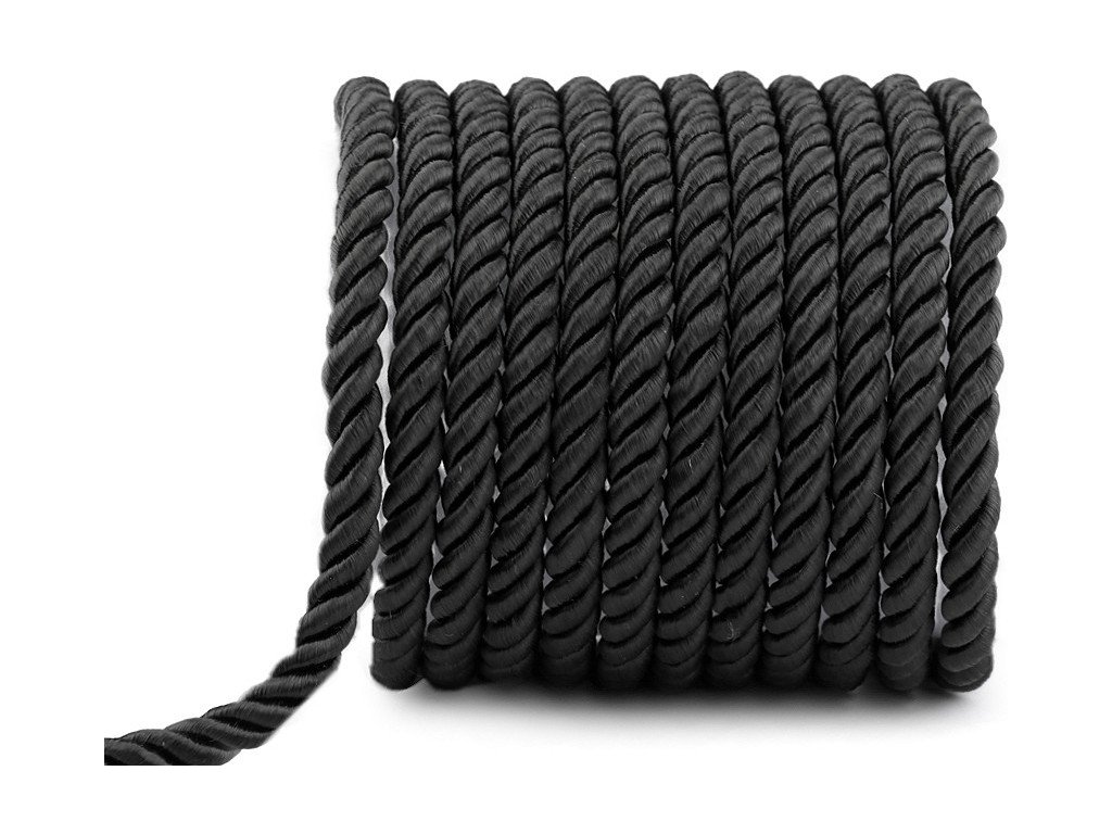 Kroucená šňůra vás zaujme svým vysokým leskem. Je velice pevná. Jednotlivé provázky mají bavlněné jádro opletené polyesterem a viskózou, která způsobuje poutavý lesk. Použití: Šňůru využijete v textilním průmyslu a čalounictví. Hodí se na výrobu uch ke kabelkám a taškám. Své využití najde také jako dekorační či funkční materiál bytových doplňků.