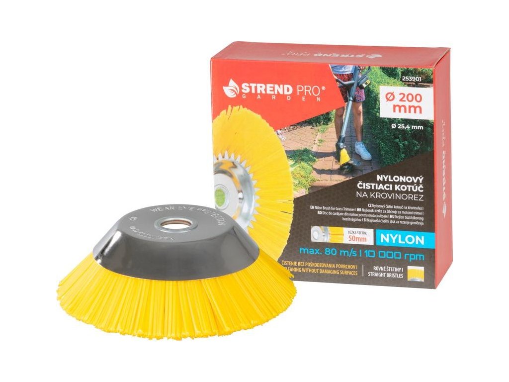 Čistiaca hlava Strend Proje určená na efektívne odstraňovanie buriny, machu a nečistôt z dlažieb, chodníkov, betónových a kamenných plôch. Vďakarovným nylonovým štetinámdokáže precízne čistiť aj ťažko dostupné miesta – bez poškodenia povrchu.