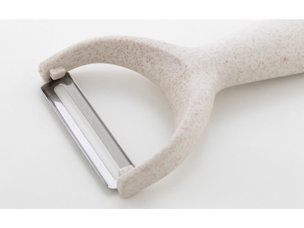 PP plastová škrabka na zeleninu s čepelí z nerezové oceli.