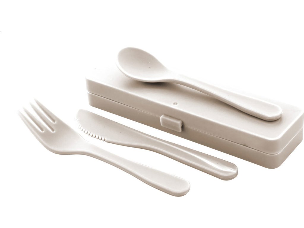 3 ks PP plastové příbory v barevném pouzdře. Včetně vidličky, nože a lžíce.