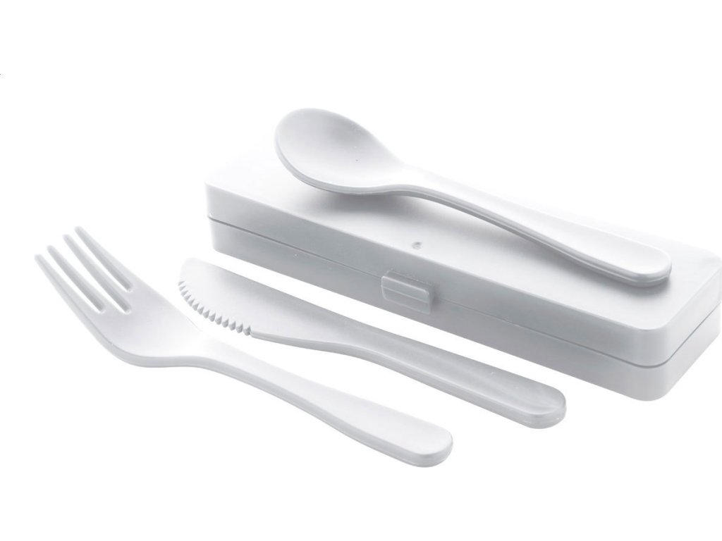 3 ks PP plastové příbory v barevném pouzdře. Včetně vidličky, nože a lžíce.
