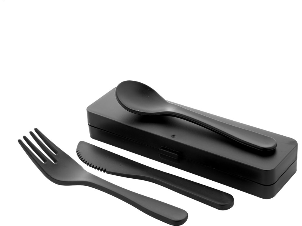 3 ks PP plastové příbory v barevném pouzdře. Včetně vidličky, nože a lžíce.