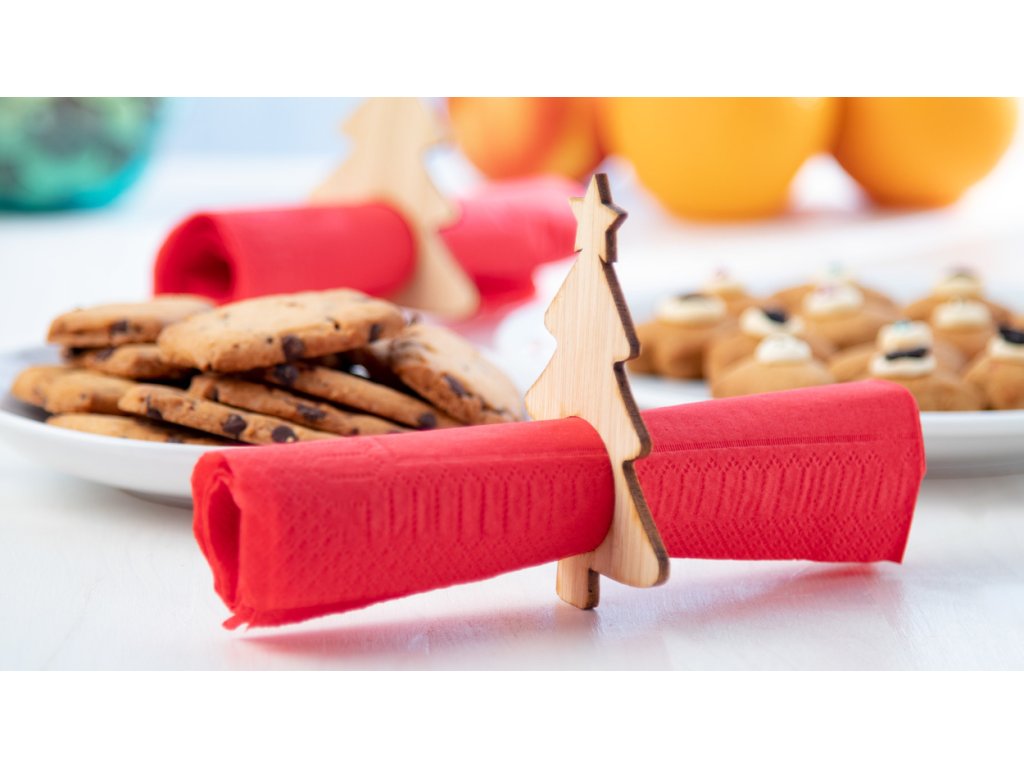 Sada 4 ks kroužků na ubrousky ve tvaru vánočního stromku z bambusové překližky.