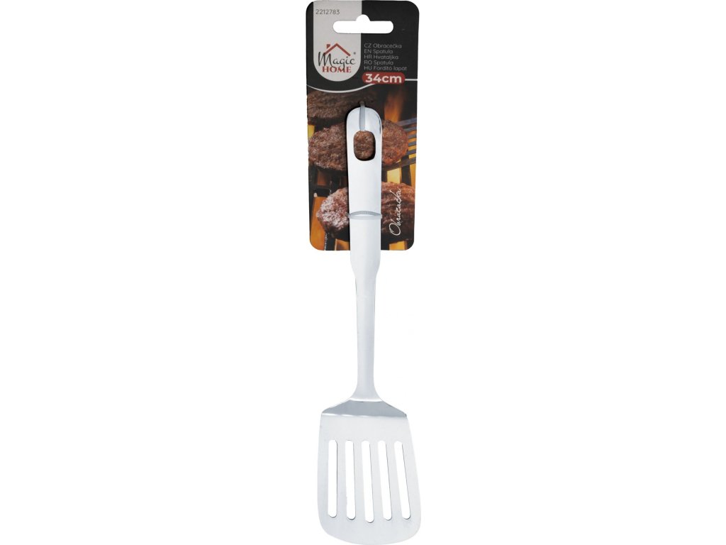 Obracečka MagicHome vhodná pro každodenní použití v kuchyni. Je vyrobena z kvalitní nerezavějící oceli. Disponuje dírou na zavěšení. Rozměry: 34,4x7,7x3,4 cm.
