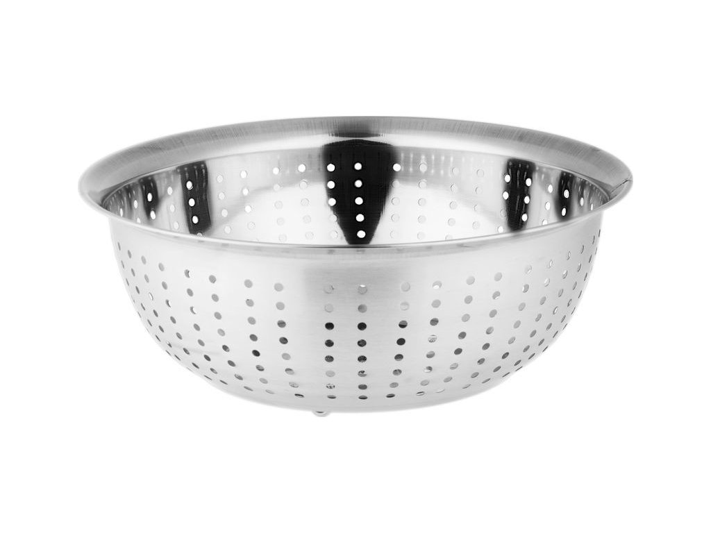 Cedník MagicHome, 26,5 cm, s miskou, kulaté otvory, nerez
