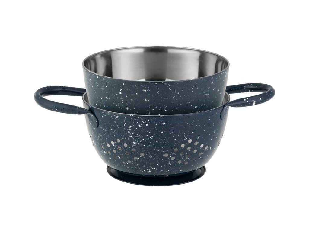 Cedník s mísou MagicHome, 15,5 cm, černý a šedý lak se strukturou kamene