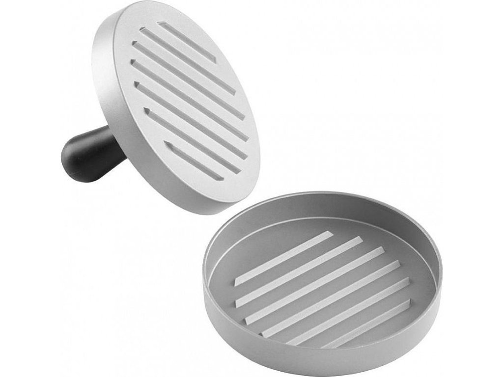 Grilovací příslušenství-lis pro přípravu dokonalých hamburgerů.