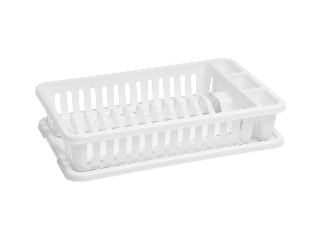 Praktický odkapávač na nádobí poskytuje dostatek prostoru pro umyté talíře, hrníčky i příbory. Barva: bílá. Rozměry: 42x26,5x8,8 cm