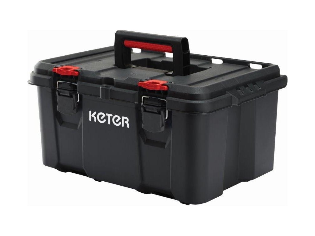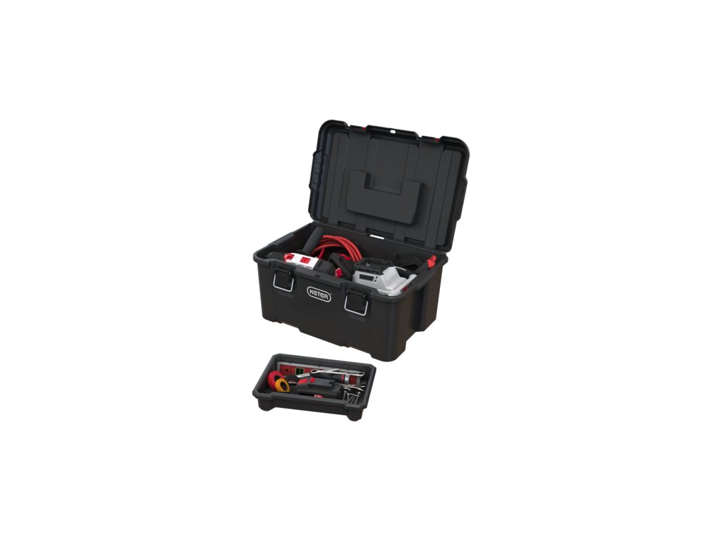 Přihrádka se dá vyjmout, čímž zvětšíte úložný prostor. Poté snadno do boxu uložíte i větší nářadí. Kovové spony zajistí pevné uzavření víka. Obsah boxu se vám tedy nevysype a zůstane v bezpečí. Rukojeť s měkkou gumou vám navíc zjednoduší jeho přenášení.