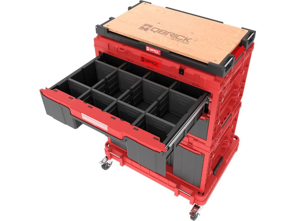 Profesionální modulární set pro dílnu i montáže v terénu. Skládací systém QBRICK® ONE Workshop Drawers SET 7 spojuje organizaci nářadí, mobilitu a pracovní plochu do jednoho celku. Všechny moduly jsou vzájemně kompatibilní a pevně se propojují přes systémové zámky.