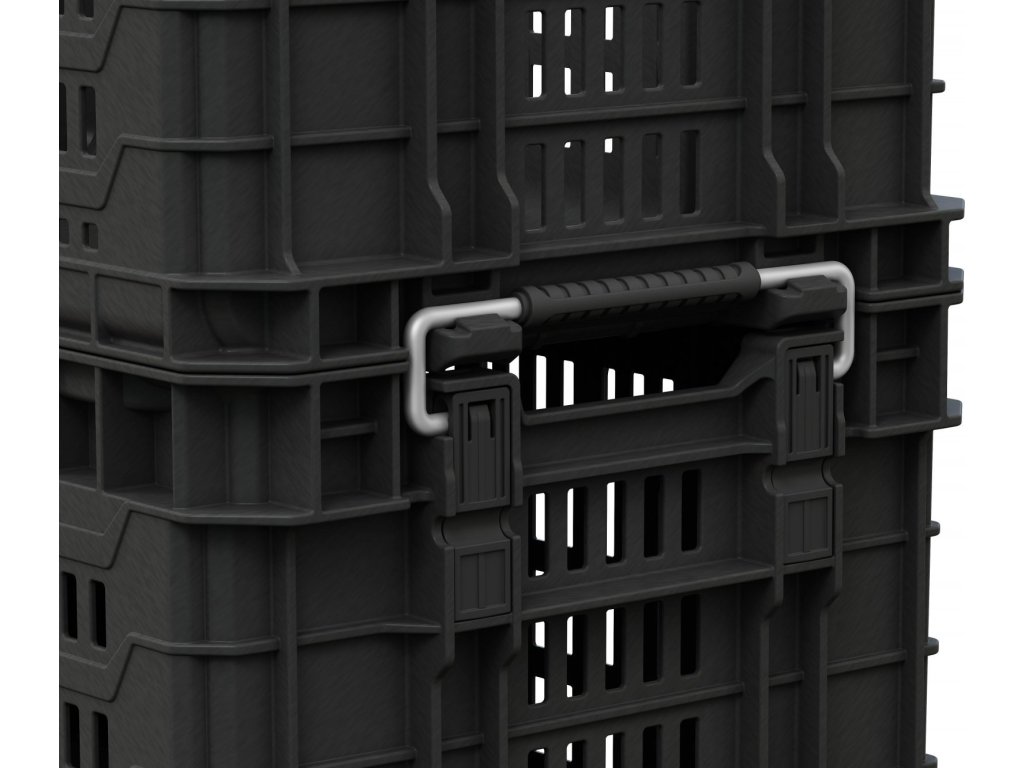 Přepravka, boční kovové rukojeti pro snadnou manipulaci, otevřená horní část pro okamžitý přístup k nářadí, modulární a stohovatelný systém, kompatibilní s řadami ROC Pro Gear 1.0 a 2.0.