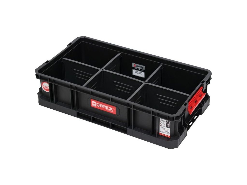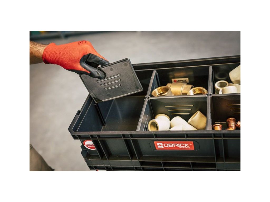 Modulárny, odolný box na náradie na prepravu ručného náradia, stavebných materiálov, ale aj na uskladnenie napr. rôznych predmetov z garáže. Vo verzii Flex je Box vybavený 5 nastaviteľnými prepážkami, ktoré umožňujú jednoduchšie prispôsobenie priestoru vašim potrebám. Boxy v spojení s Transport Platform s radom Qbrick TWO tvoria mobilný box do 100 kg.