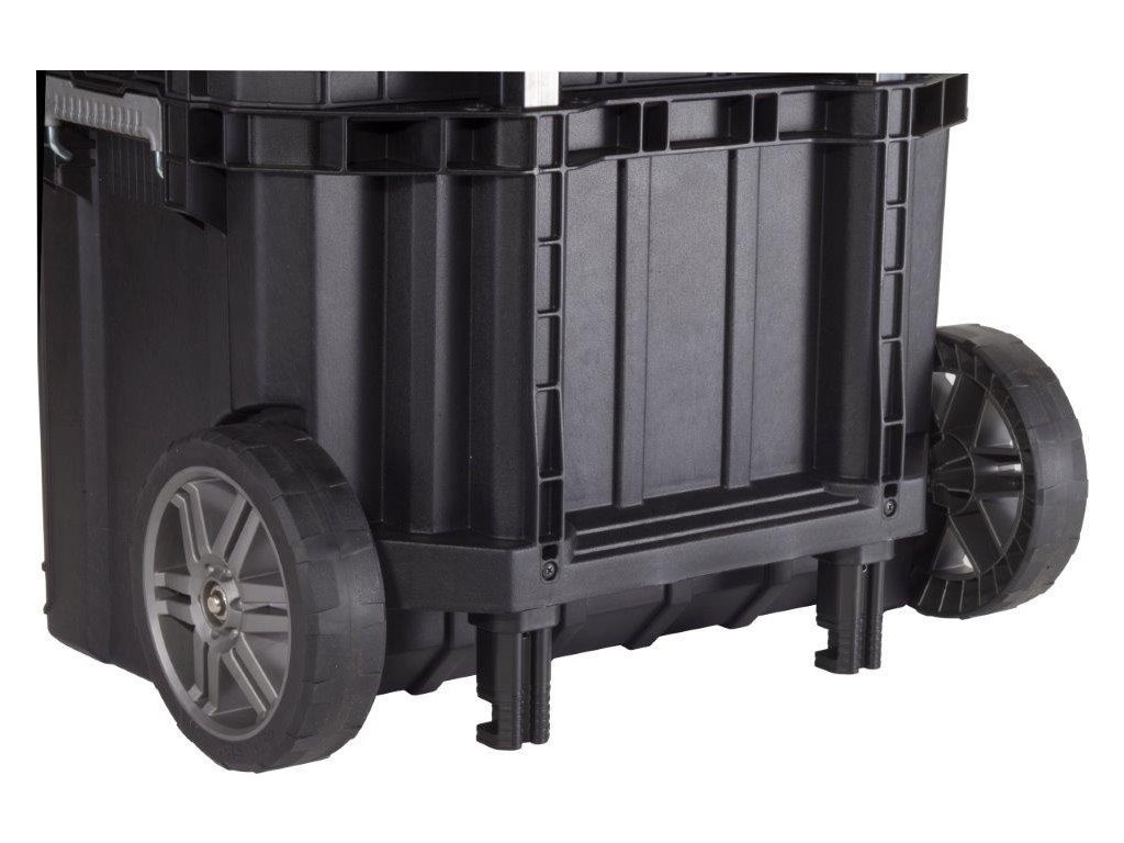 Odolné západky zajistí pevné uzavření boxu. Jeho obsah se vám tedy nevysype a zůstane v bezpečí. Madlo a kolečka vám navíc zjednoduší jeho přemisťování a manipulaci.