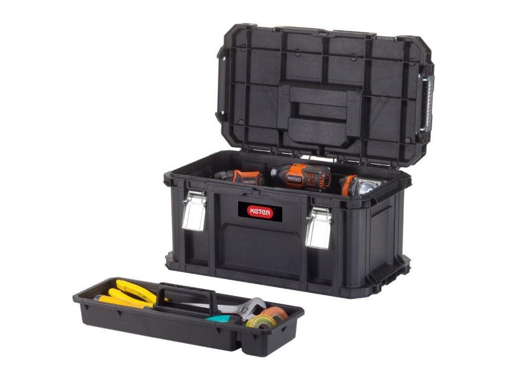 - Úložný box s odnímatelným tácem na odkládání nářadí