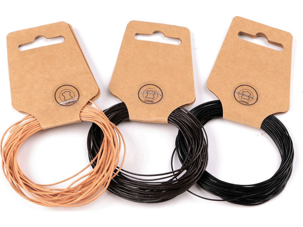 Tenká kulatá šňůrka z hovězí kůže má široké možnosti použití. Hodí se na ozdobné šněrování oděvů a kabelek, vedle voskovaných šňůr je nejčastějším návlekovým materiálem pro bižuterii. Šperkaři na ní zavěšují přívěsky dá se i různě splétat do náhrdelníků a náramků. Šňůrka č.1 je přírodní, není úplně kulatá, je plochá, z jedné strany hladká, z druhé strany broušená. Šňůrka č.2 a 3 je kulatá, lakovaná, má lesklý povrch.