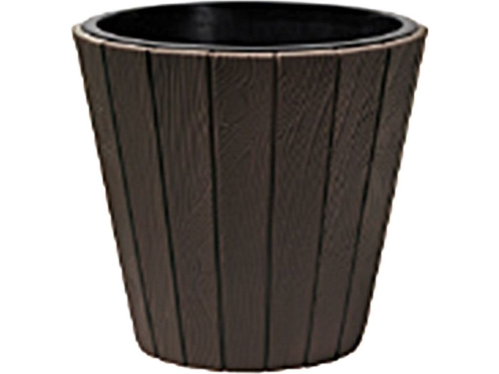 Plastový, kulatý květináč Woode s dekorem dřeva.