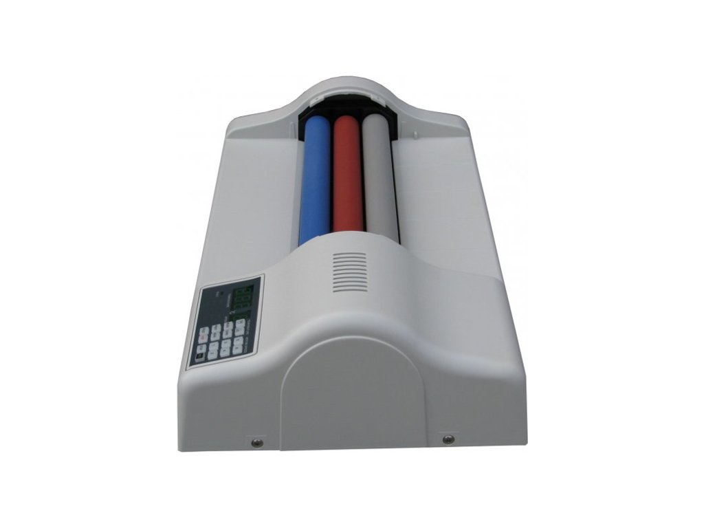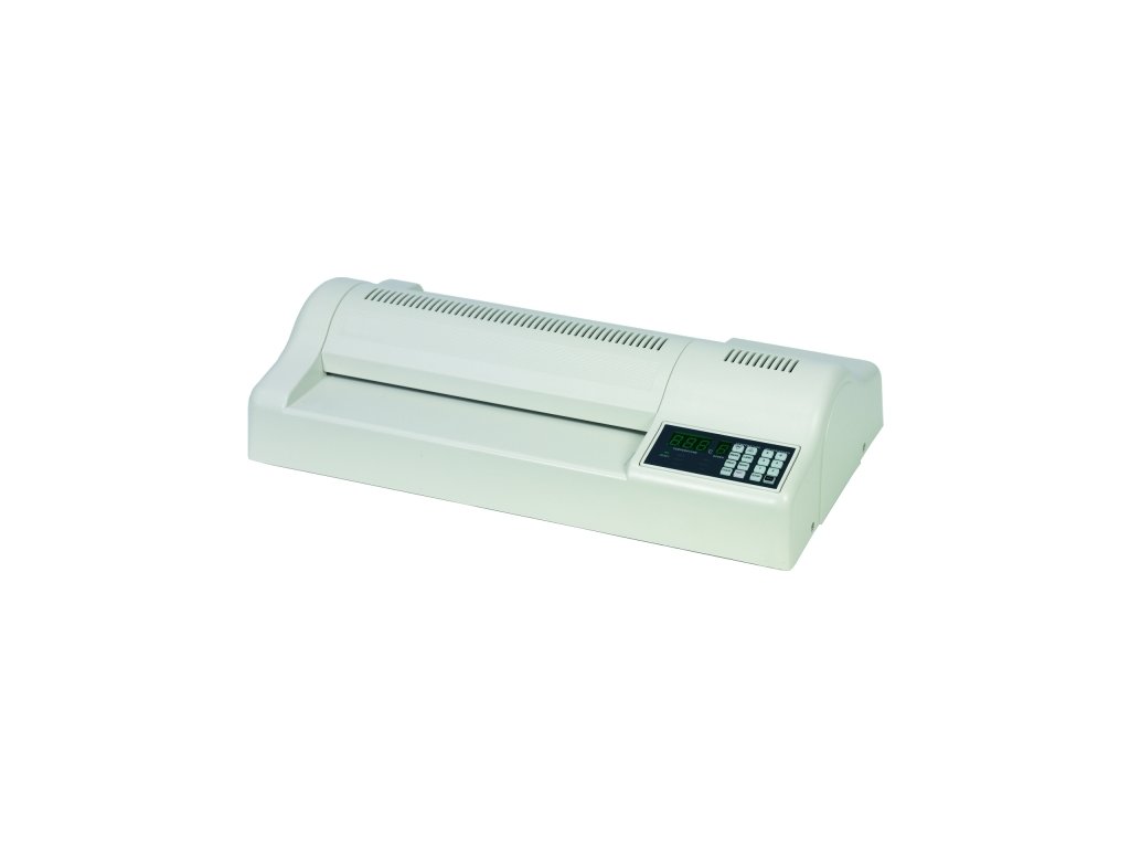 Profesionální laminátor do formátu A3 s 6-ti laminovacími válci (4 vyhřívané). Určený pro intenzivní zatížení při laminování až do 250 mic tloušťky laminovací folie. Komfortní obsluha prostřednictvím digitálního ovládacího panelu s předvolenými pracovními stavy stroje. Rychlý náběh do pracovního stavu cca do 3 min., maximální rychlost až 105 cm/min. Vybaven zpětným chodem, ochranným pracovním režimem Stand-by pro šetrné vypínání stroje. Umožňuje laminovat na desku až do tloušťky 1,5 mm. Ideální pro laminování fotek, barevných tonerových tisků s velkým krytím. Díky speciální technologii rovnoměrného výhřevu válců kondukčním topidlem dosahuje špičkové kvality (hladkosti) laminace. Snadná údržba a čištění díky odnímatelnému hornímu krytu válců. Příkon: až 1000 W