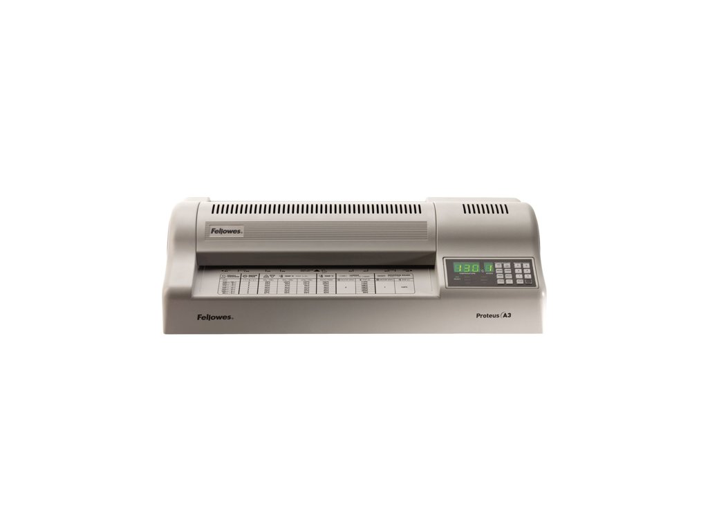 Laminátor Fellowes Proteus A3 je profesionální zařízení navržené pro vysoké pracovní zatížení a precizní laminaci dokumentů až do formátu A3. Disponuje šesti laminovacími válci, z toho čtyřmi vyhřívanými, což spolu se speciální technologií rovnoměrného ohřevu kondukčním topidlem zajišťuje špičkovou kvalitu laminace bez nerovností či bublin. Je vhodný i pro laminaci fotografií a plnobarevných tiskovin. Přístroj zvládá laminaci fólií o tloušťce až 250 mikronů. Maximální tloušťka laminovaného dokumentu je 2 mm. Do provozního režimu se zahřeje přibližně za 3 minuty a dosahuje rychlosti až 95 cm/min. Ovládání je řešeno přehledným a intuitivním displejem, samozřejmostí je také zpětný chod pro snadné uvolnění dokumentu. Proteus A3 je spolehlivým řešením pro náročná pracovní prostředí, kde je potřeba vysoký výkon a profesionální výsledek.