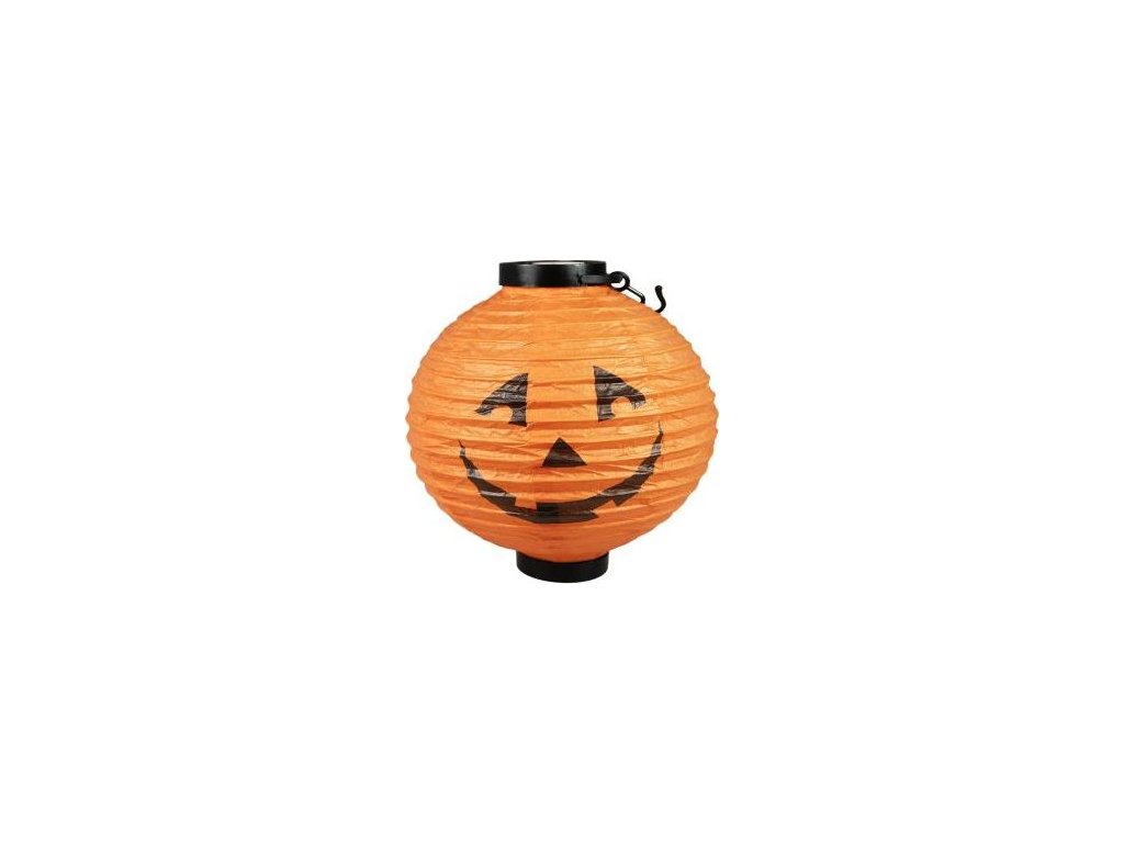 Svítící lampion s motivem dýně je perfektním doplňkem na halloweenskou párty!Lampion má tvar koule, je k zavěšení. Má průměr 19 cm. Tento super kousek zajistí parádní atmosféru na tvém večírku!