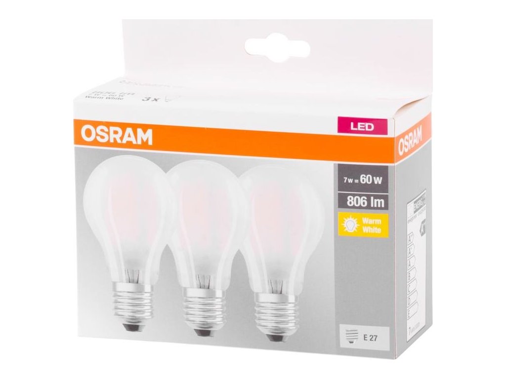 Osram® BASIC LED žiarovka je spoľahlivý a energeticky úsporný zdroj osvetlenia s teplým bielym svetlom. S technológiou nežiariacich filametov a žiarivým podsvietením je ideálna pre domáce osvetlenie a dlhšiu životnosť. Tento multipack obsahuje žiarovky s E27 závitom a jemne čírou povrchovou úpravou.