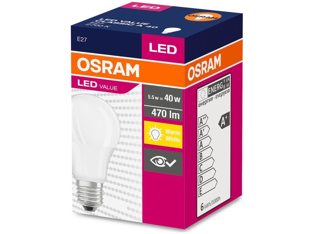 Žiarovka OSRAM® LED FR 040 (ean6927) non-dim, 4,9W/827 E27 2700K Value CLASSIC A