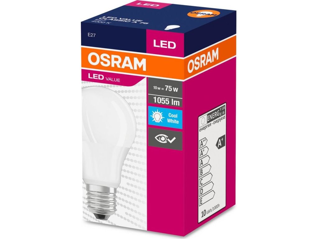 Žiarovka OSRAM® LED FR 075 (ean3404) non-dim, 10W/840 E27 4000K Value CLASSIC A