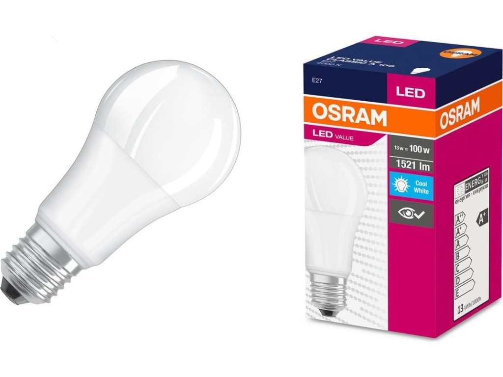 Žiarovka OSRAM® LED FR 100 (ean3428) non-dim, 13W/840 E27 4000K Value CLASSIC A