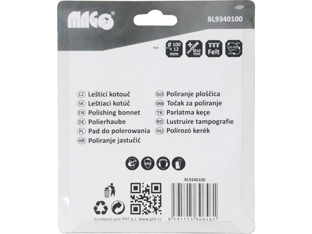 Leštící kotouč filcový 100mm tloušťka 12mm se stopk