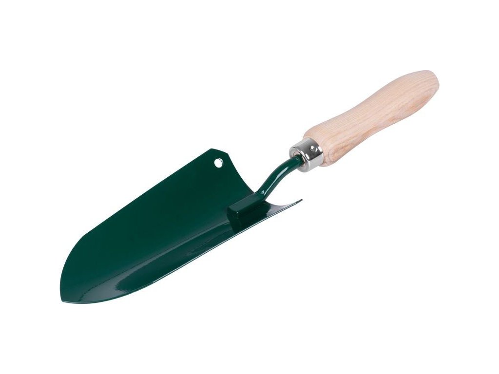 Lopatka sázecí široká. Pracovní část je kovová v zeleném barevném provedení.