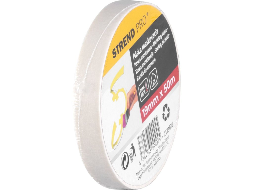 Páska Strend Pro, 19 mm x 50 m, bílá, malířská, maskovací, krepová