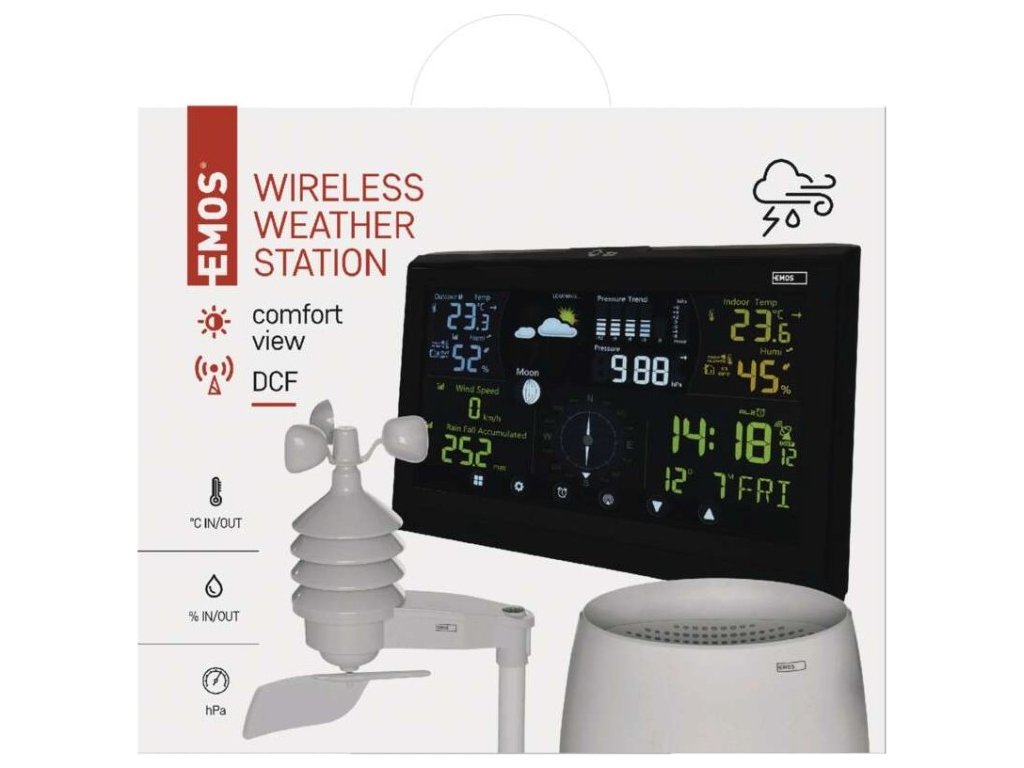 Máte rádi přesné a aktuální informace o počasí? Pokud ano, rozhodně by vám doma neměla chybět meteorologická stanice Emos E6016. Ta vám poskytne přehled o aktuálním stavu počasí a mnoho dalších praktických funkcí. Nebudete tak už překvapeni, když se slunné ráno náhle změní do propršeného dne. Meteostanice je doplněná bezdrátovým čidlem srážek a větru, které má dosah až 100 metrů a zároveň umožňuje připojení až 3 dalších a 1 anemometr. Stojánek umožňuje jednoduché umístění na polici nebo ji můžete snadno připevnit na zeď.