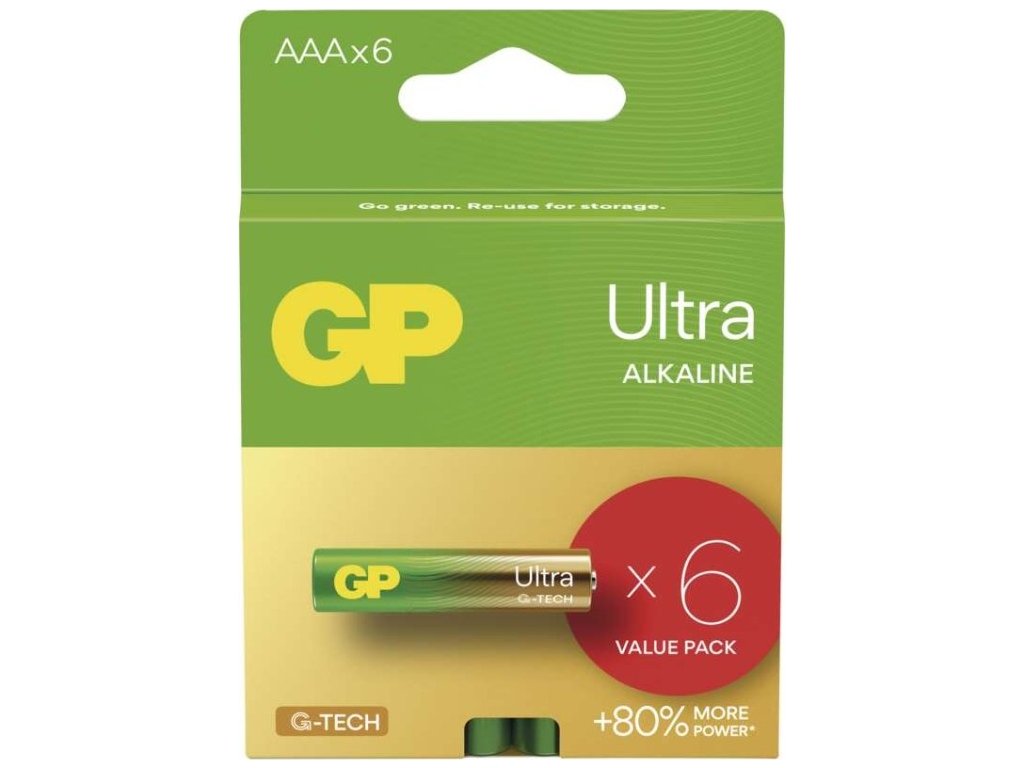 Alkalická baterie GP Ultra AAA (LR03), 6 ks