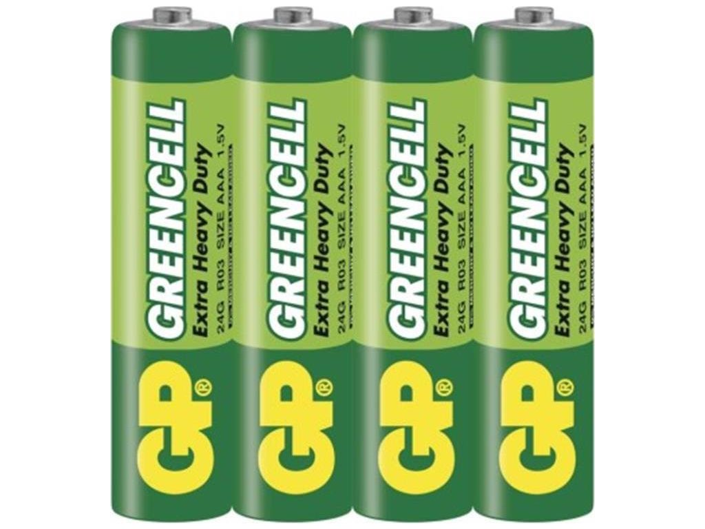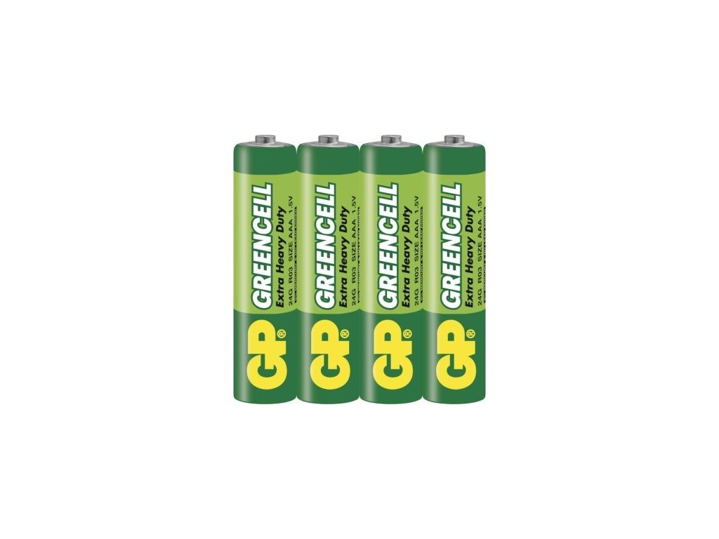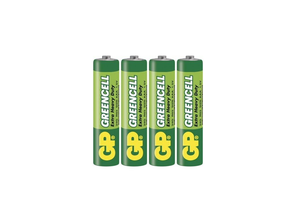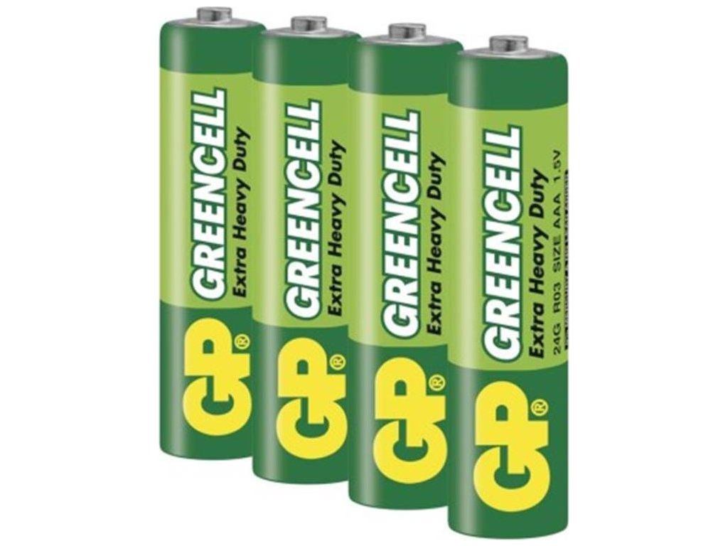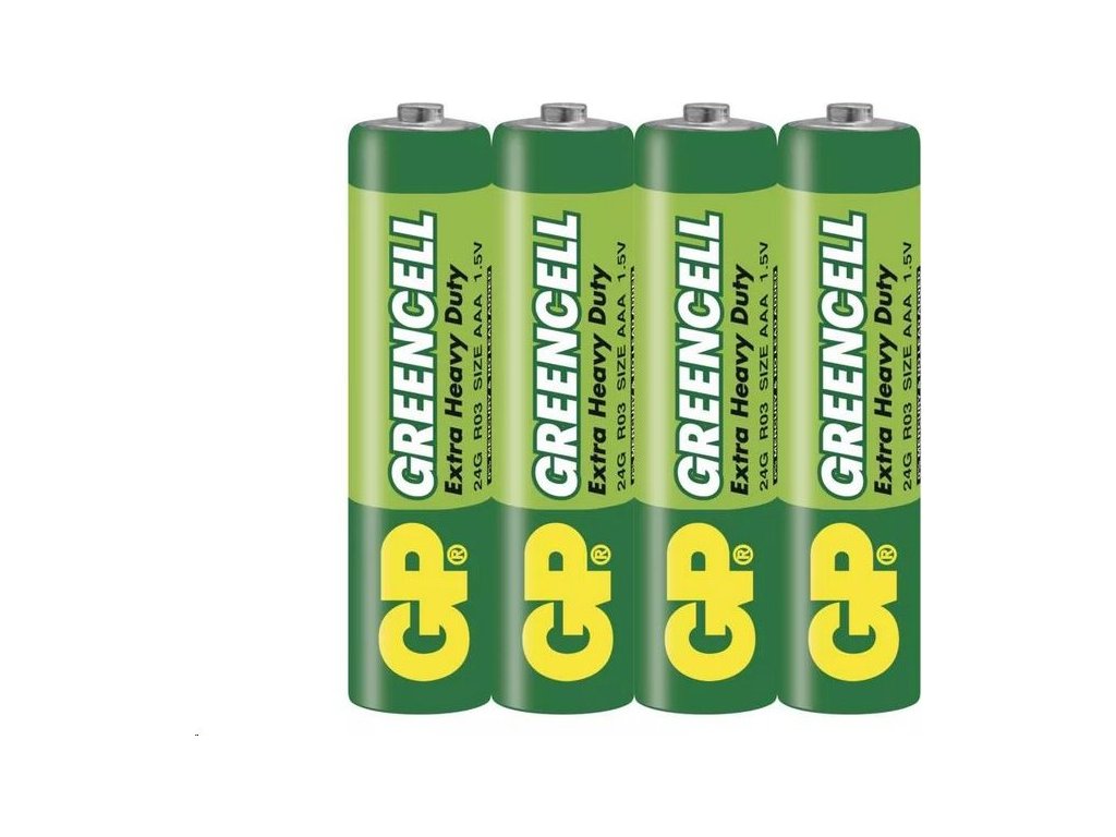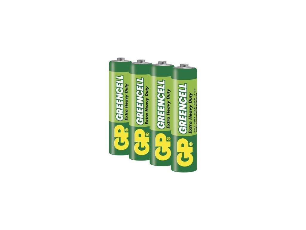 Zinková baterie GP Greencell R03 (AAA), 1,5 V, nenabíjecí, 4 ks ve fólii. Ekonomická volba pro dálkové ovladače, hodiny, kalkulačky a další běžná zařízení. Stabilní výkon a až 3letá skladovatelnost. Cena za 4 kusy.