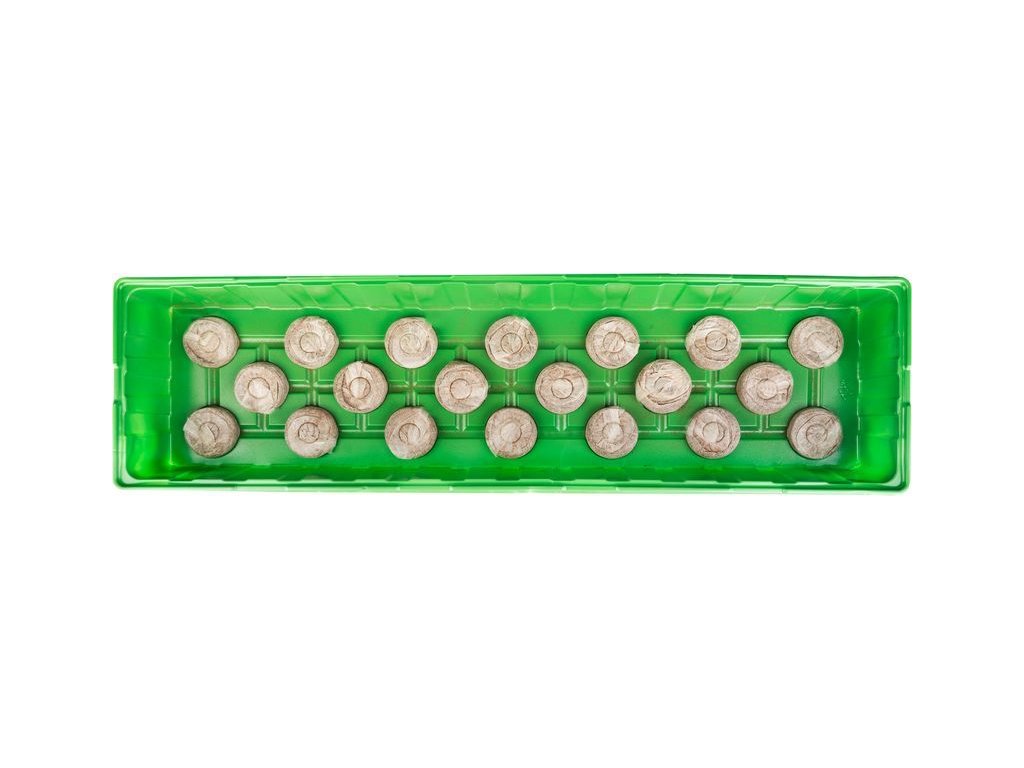 20 kokosových tablet o průměru 3,5 cm (složení: 50% kokos, 45% rašelina a 5% zakoreňovací fertilizér)